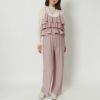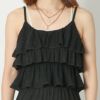 フリルが可愛いキャミソールとパンツのセットアイテム。柔らかく動きのある生地感に3段フリルのボリューム感あるキャミソールは存在感抜群◎パンツは着丈が長めなのでショート丈アイテムと相性ピッタリです。セットアップでももちろん着回しもできるのでコーデの幅が広がります。