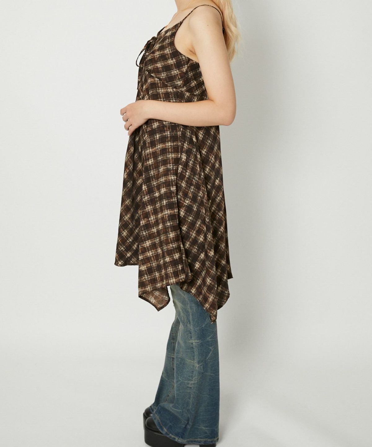 他の画像を見る 《微起毛チェック×ギャザー》レディース キャミワンピ ミニ丈 体型カバー 秋冬 2BUY10%OFF 定価 ¥ 5,489 のところ SALE価格 ¥ 2,744 税込 在庫切れ カートに入れる お気に入りに登録する