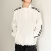 袖に施したラインがスポーティーなエッセンスを加えるジッププルオーバーが登場★裾のドローコードで簡単にシルエットを変えられる♪肩から袖にかけて入ったラインと、スタンドネックがデザインのポイント◎パンツはもちろんのことガーリーなスカートをあわせて韓流ファッションのような雰囲気が完成する1着です☆