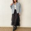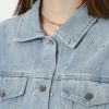 これからの季節に大活躍ビジューが華やかなデニムジャケット。ウォッシュ加工のスタンダードなデニムジャケットにビジューを付けることによって華やかさをプラス★少し大きめな身幅でリラクシーな着心地が楽しめる飽きの来ないアイテムです♪
