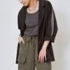 シンプルでありながら、サイドのジャージラインがアクセントとなり、すっきりとしたラインを作り出します。軽くて動きやすい素材で、さっと羽織るだけでおしゃれに決まります。どんなコーディネートにも合わせやすいシンプルなデザインながら、しっかりと存在感があります!