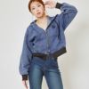 デニム素材ならではのヴィンテージ感が魅力のフード付きWzipブルゾン。ポイントはバッグの擦れプリント!コーデにこなれ感をプラスしてくれます。コンパクトな丈感でスタイルアップ効果も期待でき、ワイドシルエットのボトムス合わせがバランス良くオススメ♪ロングシーズンでデイリーに活躍してくれる一着。