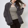 トラックジャケットのデザインを落とし込んだデニム素材ブルゾン。リブのラインと袖ラインが施されたスポーティーなルックスに、デニム素材がストリート感ある雰囲気を演出♪BIGシルエットで気になるウエスト周りもしっかりカバー◎ジョガーパンツやカーゴパンツと合わせたスケーターファッションや、ミニスカートと合わせて韓国っぽコーデにも☆