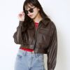 トレンド感のあるショート丈デザインに、クールな合皮素材を組み合わせたブルゾン。コンパクトなシルエットでスタイルアップも叶う一枚◎