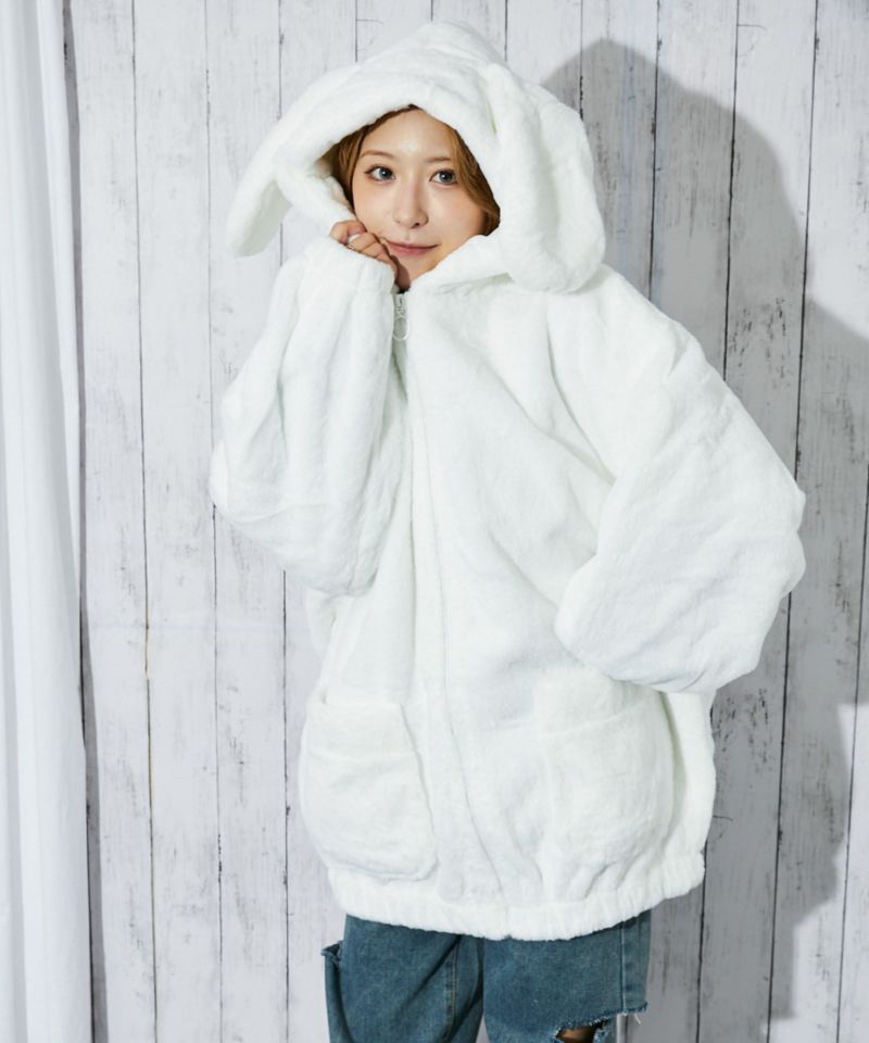肌ざわりの良いふわもこ素材とアニマル耳の組み合わせで、