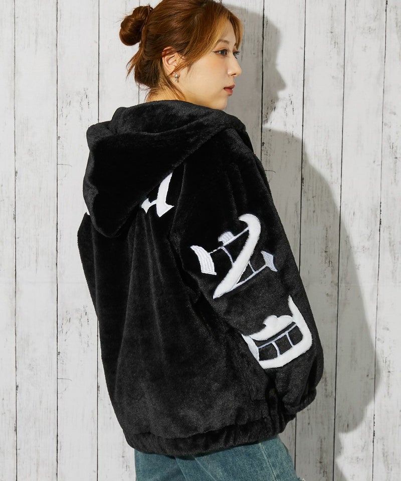 《ストリートムード全開? 存在感のあるバックロゴが映えるファーブルゾン》