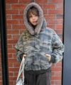 ・ボリューム感あるファーフードで華やか見え