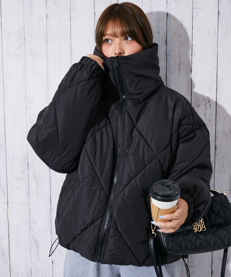 3. 《ダイヤキルト×ビッグカラー》レディース 中綿ブルゾン 裾ドローコード付き 冬アウター