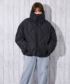 全体にダイヤ柄キルティングを施した中綿ブルゾン。