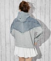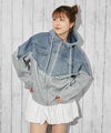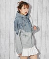異素材のコントラストが目を惹く、デニム切り替えデザインのフード付きブルゾン。