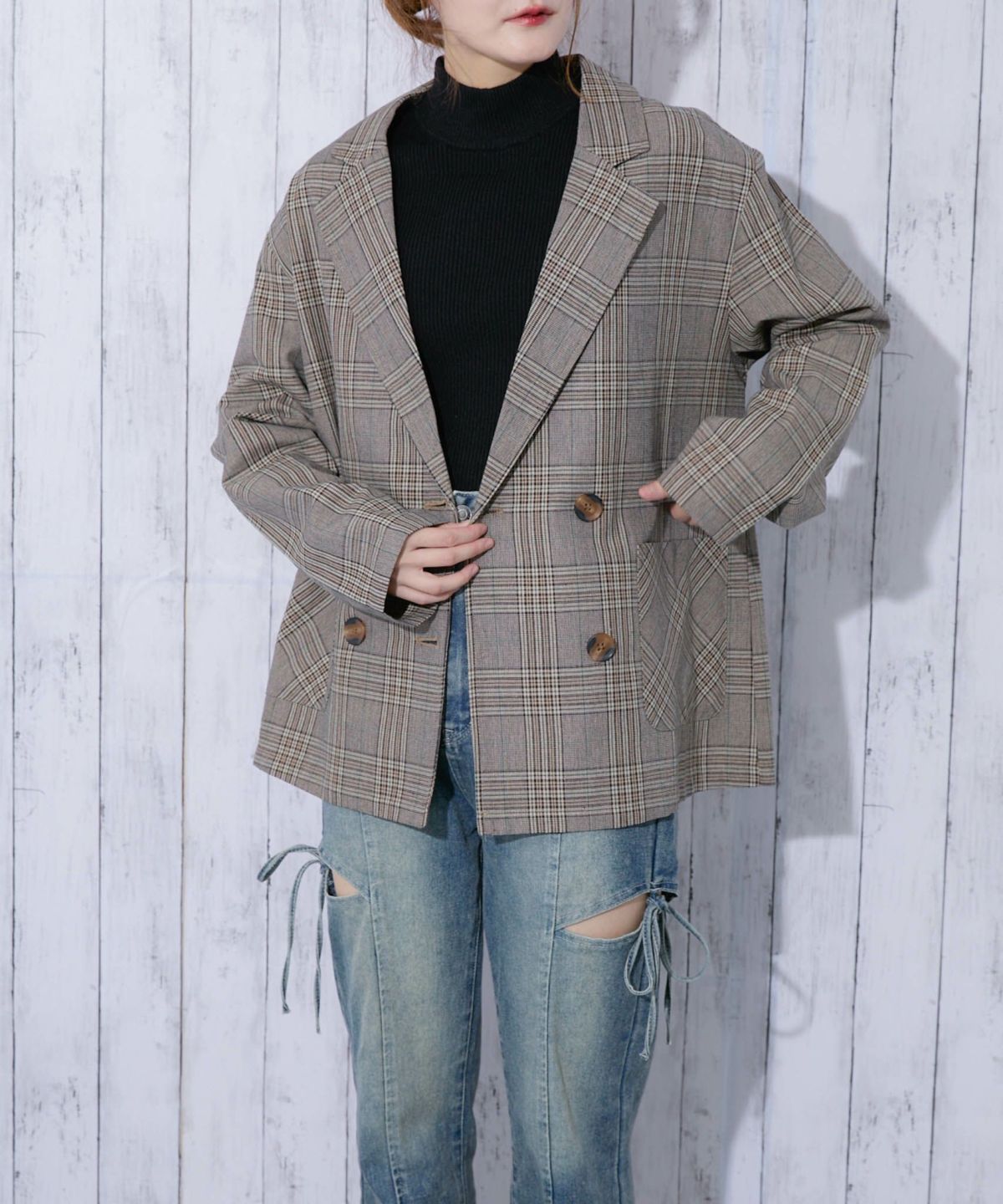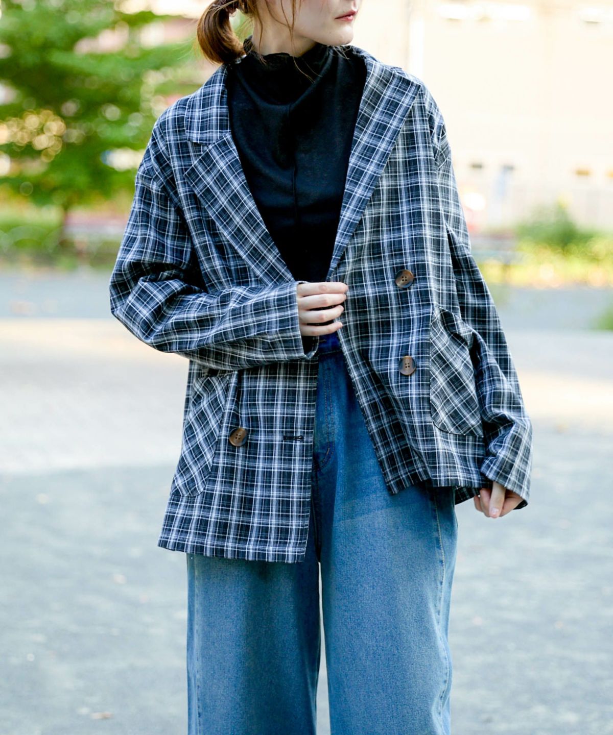 他の画像を見る 《チェック柄×ダブルテーラー》レディース ジャケット 羽織り オーバーサイズ 春秋冬 2BUY10%OFF 定価 ¥ 6,589 のところ SALE価格 ¥ 3,294 税込 カートに入れる お気に入りに登録する
