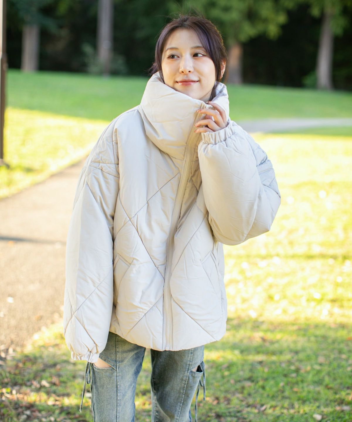 他の画像を見る 《ダイヤキルト×ビッグカラー》レディース 中綿ブルゾン 裾ドローコード付き 冬アウター NEW 2BUY10%OFF 定価 ¥ 8,789 のところ SALE価格 ¥ 4,394 税込 カートに入れる お気に入りに登録する