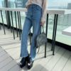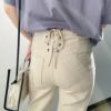 レースアップ バックスタイル バックコンシャス デニム パンツ ワイドパンツ 春 夏 秋 冬 美脚 2034024