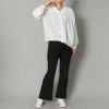 美脚効果を高めつつ、スタイリング力も抜群なフレアパンツ。腰周りがすっきりと見えるディテールで脚長効果◎トレンドのリブ素材に光沢感をプラス、いつものコーデが印象的に仕上がること間違いなし。