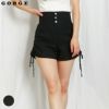 ボトムス ショートパンツ 春 夏 プチプラ ドロスト ハイウエスト 3つボタン 韓国ファッション 2427524