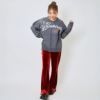 フレアシルエットが特徴のベロア素材がときめくフレアパンツ。脚長効果が期待でき、一枚でコーデが華やかに◎ウエストはゴム仕様&柔らかく伸縮性がある素材でストレスフリーな着用感です。ゆったりシルエットのジャケットやニット合わせがオススメ♪トップスはアウトスタイルでバランスよく決まります!