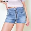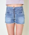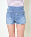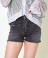 ウエストサイドの編み上げデザインが印象的なフロントジップ ショートデニムパンツ