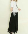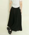 程よい落ち感と微光沢感のある素材で、動くたびに揺れる女性らしいシルエットが魅力。ウエスト部分はシャーリングゴム仕様で、ラクにフィットしながらもデザインのアクセントに。たっぷりとしたワイドシルエットながら、縦ラインを強調することでスタイルアップ効果も抜群です。両サイドには便利なポケット付きで、機能性もばっちり。