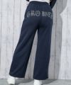 ゆるっとしたワイドシルエットと程よい厚みの裏毛素材で、リラックス感と動きやすさを両立。ウエストはゴム仕様で、着脱もらくちん◎バックのロゴデザインがポイントになっており、後ろ姿にこなれ感を演出してくれます。