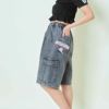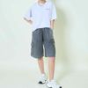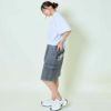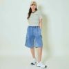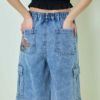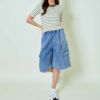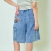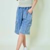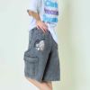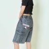 キャラ刺繍がアクセント!遊び心あふれるカーゴデニムハーフパンツ♪