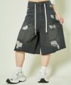 大胆なクラッシュ加工が視線を引きつけるデザイン。ところどころに施されたヴィンテージ風の色落ちと、味のあるダメージでこなれた印象に仕上がっています。フロントの長めのヒモディテールがコーデのアクセントに。ウエストは程よくフィットするデザインで、ラフなのにすっきりとしたシルエットが魅力です。