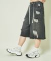 存在感のあるダメージ加工がアクセントになった、こなれ感たっぷりのデニムハーフパンツ。動きやすさとトレンド感を兼ね備えた1枚で、夏のストリートスタイルにぴったりです。