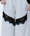 裏毛スウェットの楽ちんさに、レース切替でフェミニン要素をプラスしたワイドパンツ。