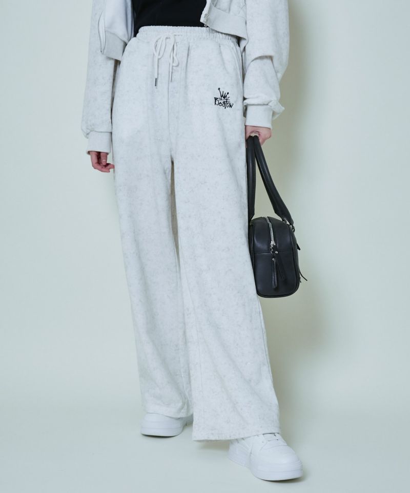 程よいゆるさとラメ刺繍のアクセントで、大人カジュアルに映える裏毛スウェットパンツ。