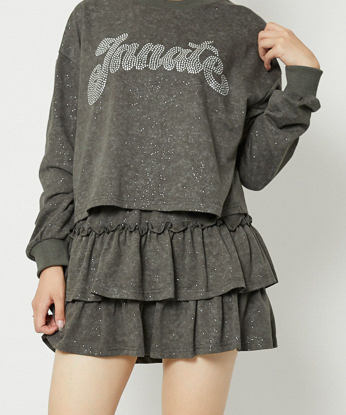 ラメ入りのミニ裏毛素材を使用した、ティアードフリルが可愛いスカパン。