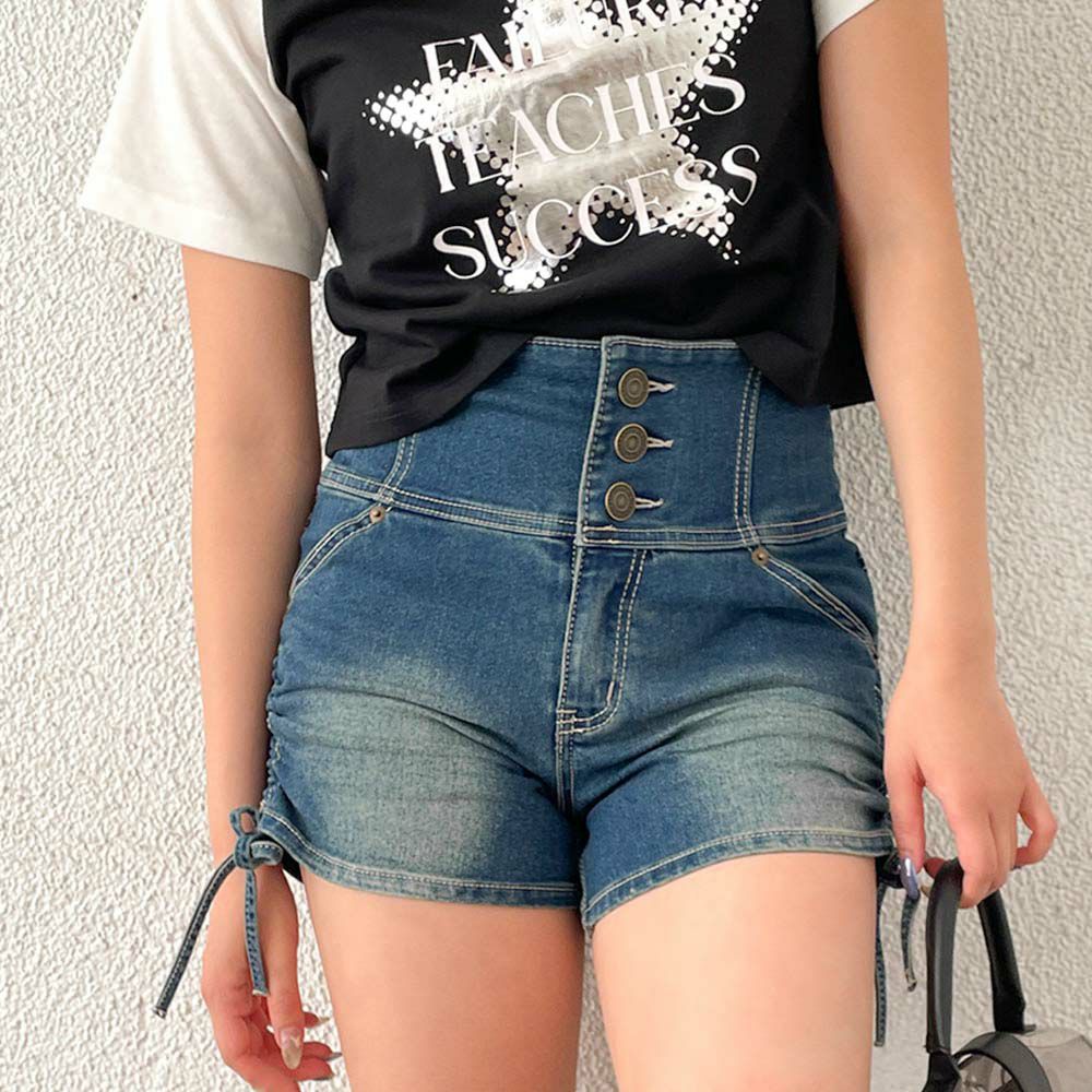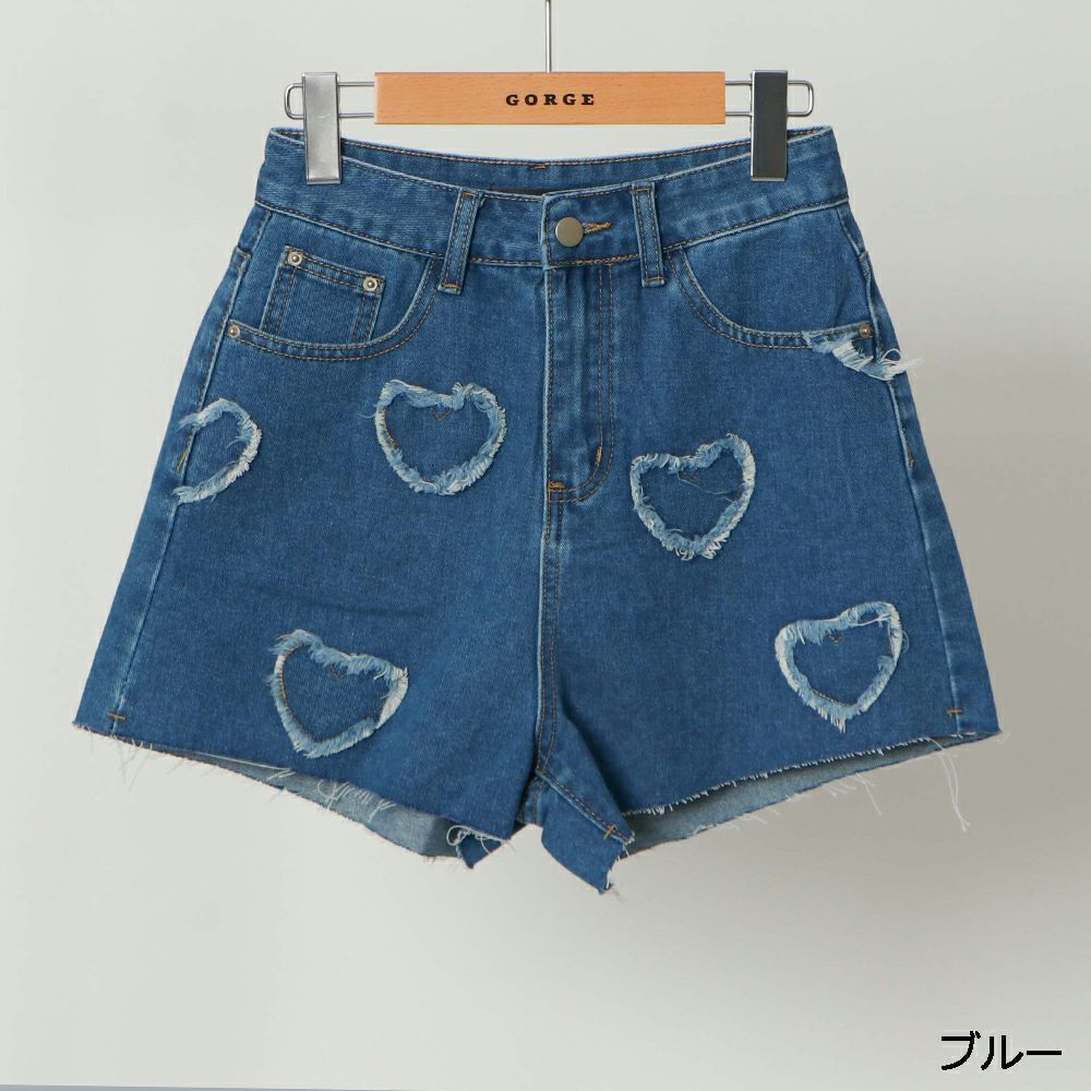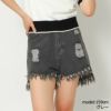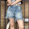 《ヴィンテージダメージ×フリンジ裾》レディース デニムショートパンツ ハイウエスト 春夏秋