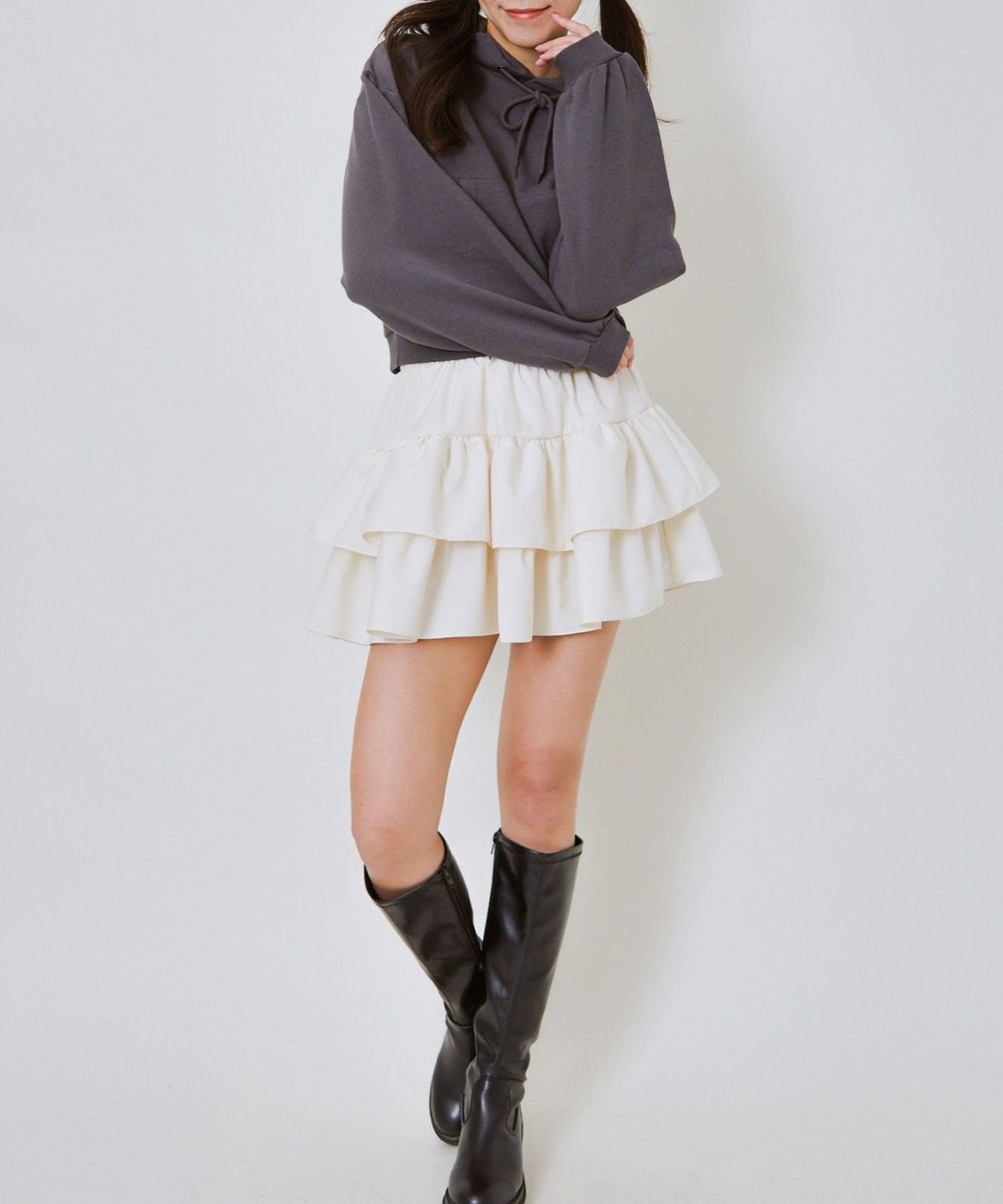 《ふんわりフリル×ドビーコットン》レディース ミニスカパン 美脚見え 春夏秋