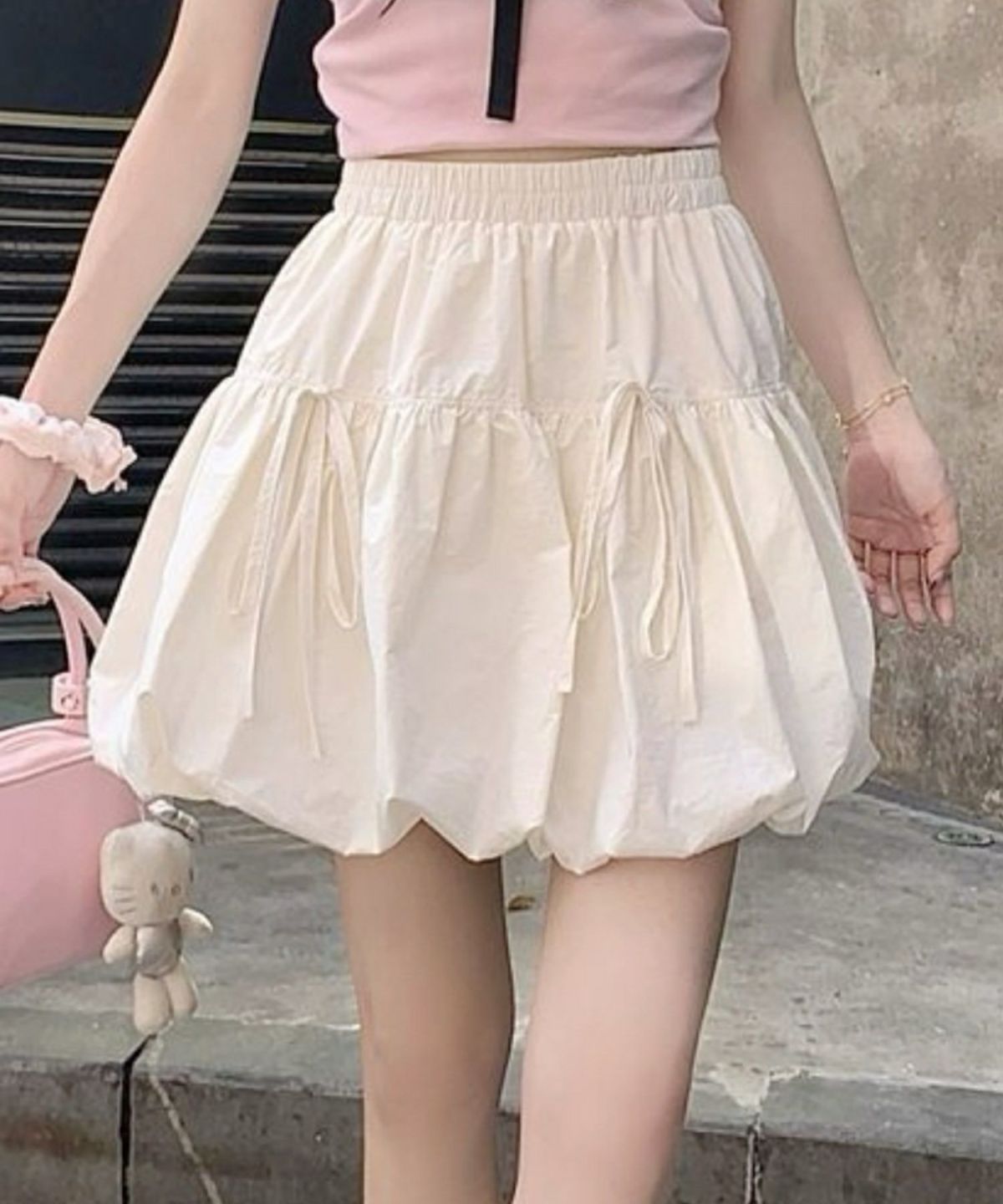《ボリューム感満点》リボンスカパン/甘カジュアル