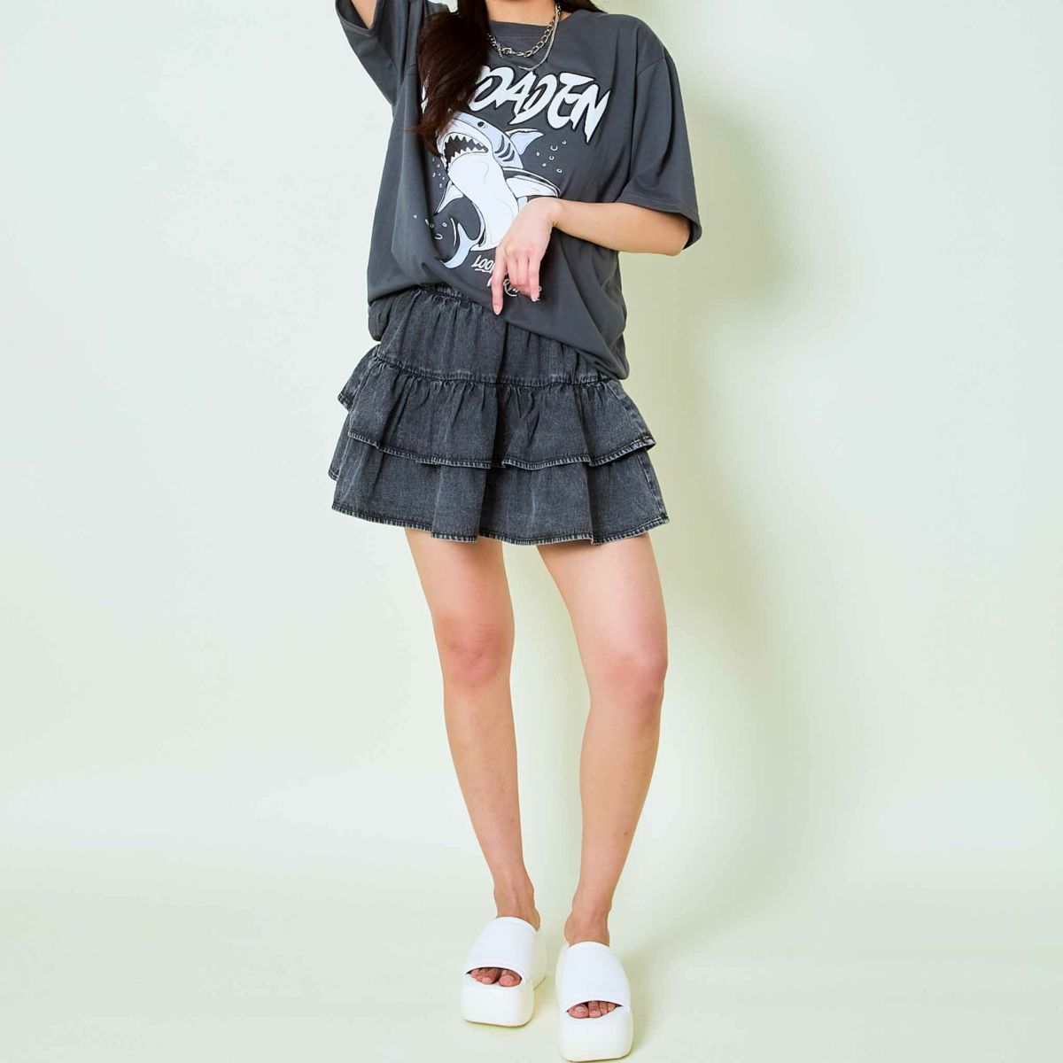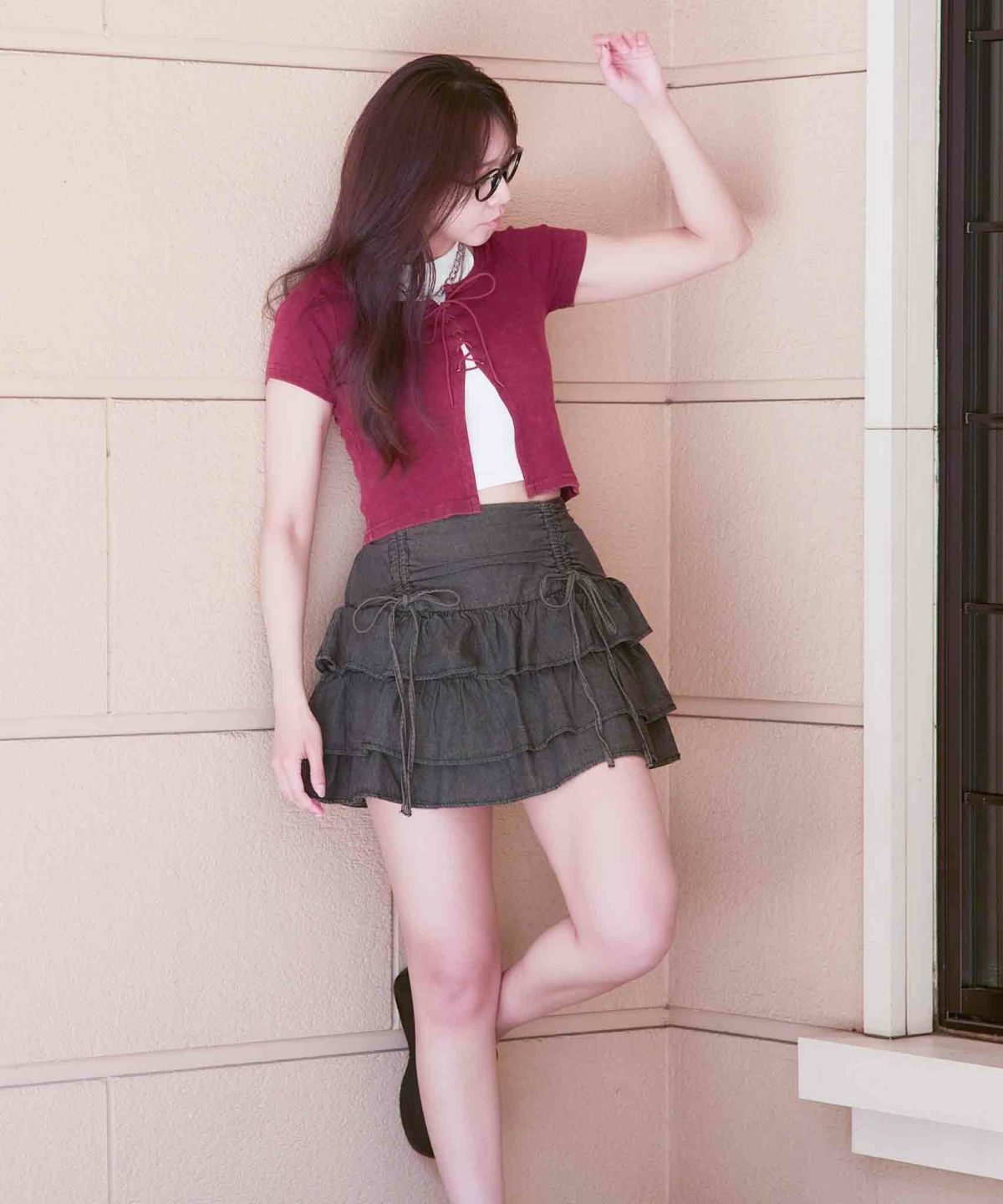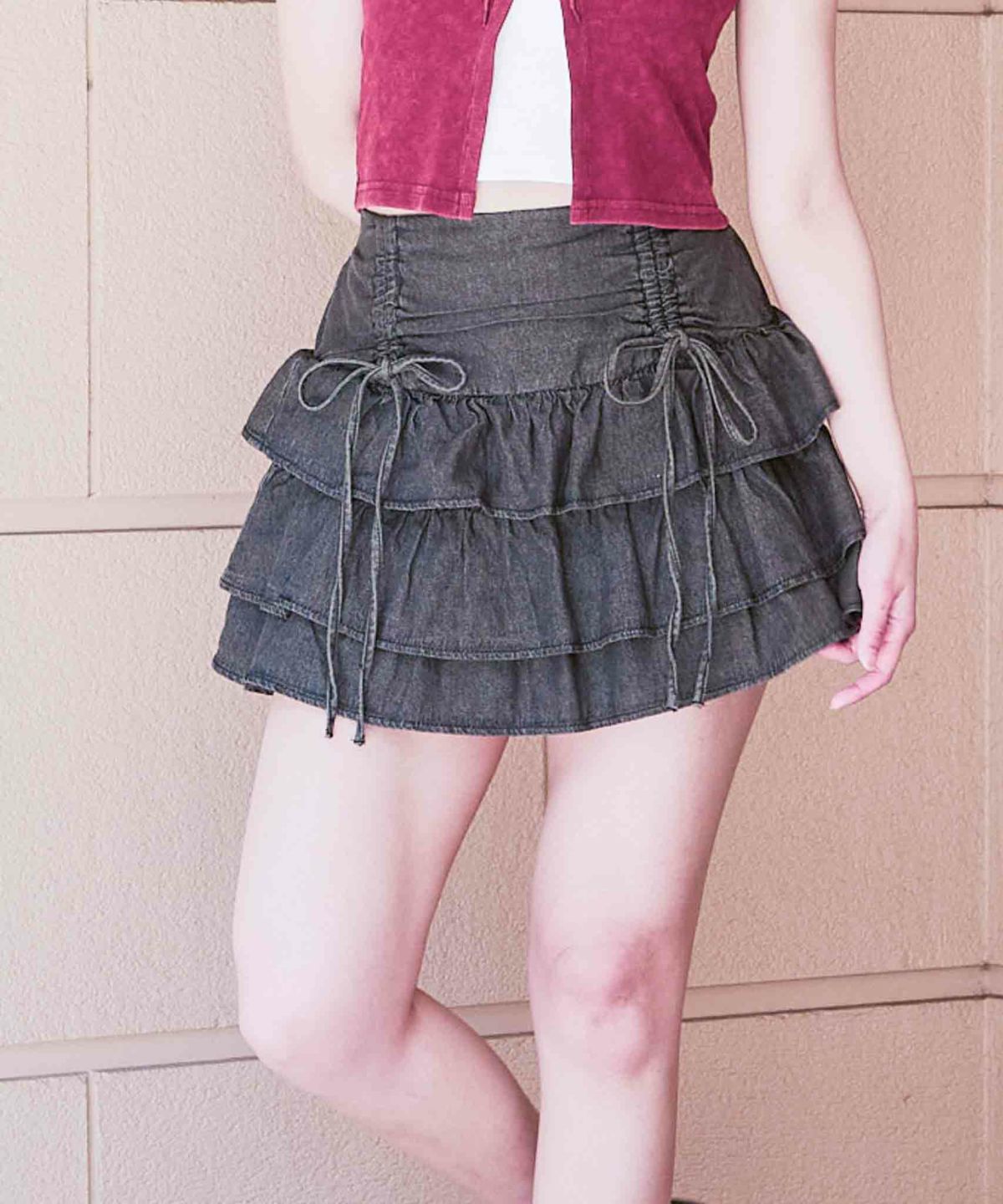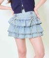 《リボン×ティアード》レディース デニムミニスカパン 美脚 フェミニン 春夏秋