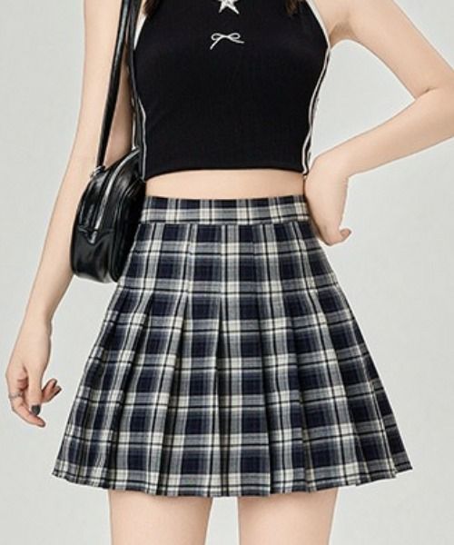 《チェックプリーツ×台形シルエット》レディース ミニスカパン ストリート ガーリー 春夏秋
