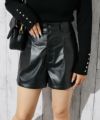 《フェイクレザー×美シルエット》レディース ショートパンツ ウエストゴム 秋冬春