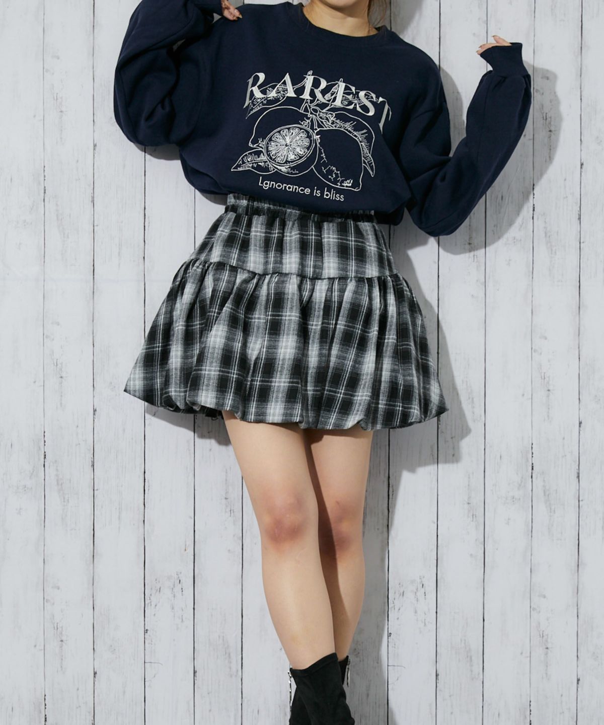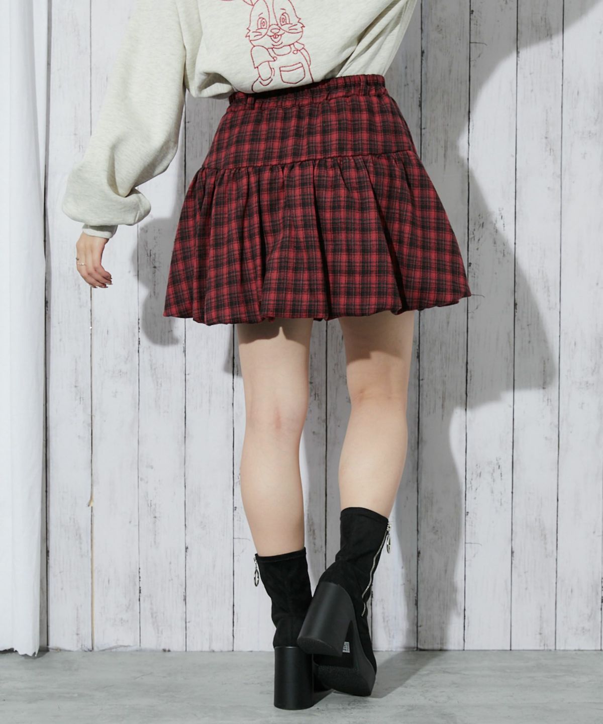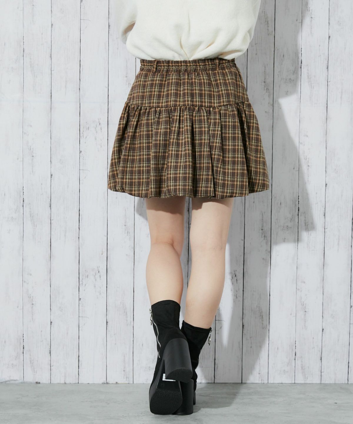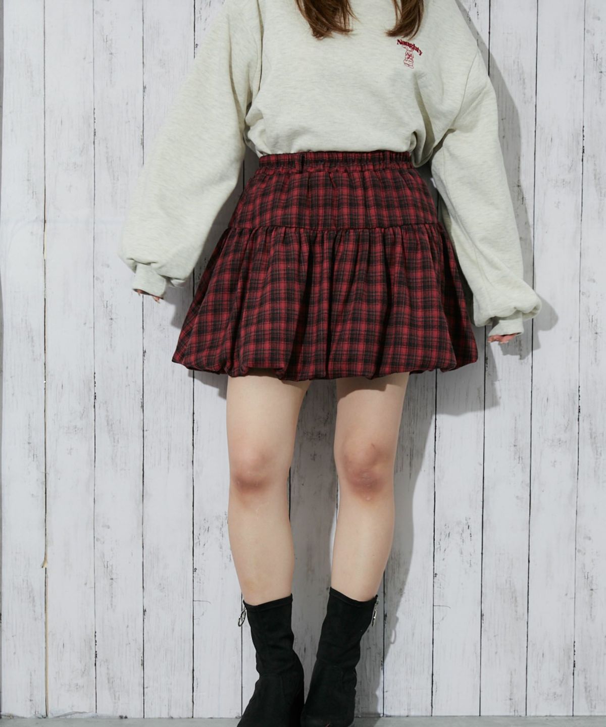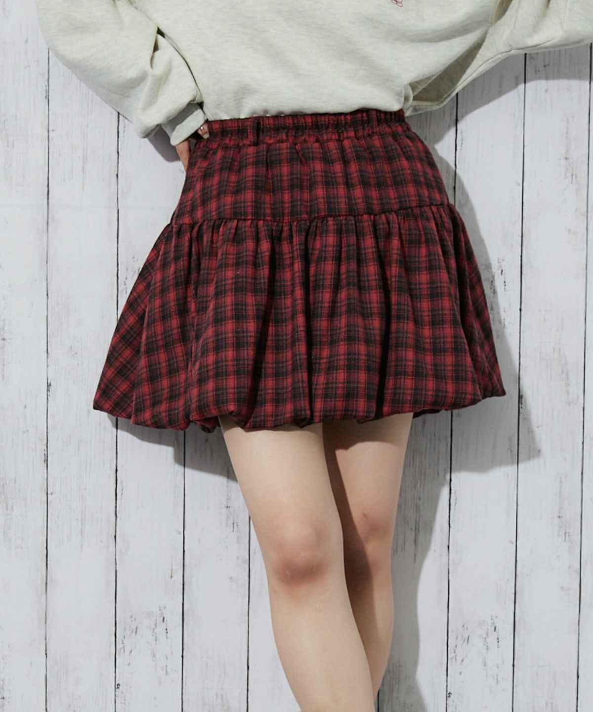 《チェック×バルーンシルエット》レディース ミニスカート 裏地インパン付き 秋冬