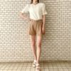 4. 《美脚×脚長シルエット》レディース 共ベルト付き タックショートパンツ ハイウエスト 春夏秋