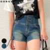 ボトムス ショートパンツ 春 夏 プチプラ ドロスト ハイウエスト 3つボタンデニム 韓国ファッション 2424066