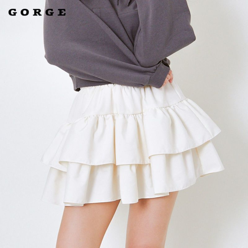 軽やかで華やかなティアードミニスカパン