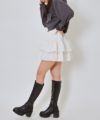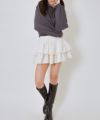 ティアードが重なることでボリューム感があり、歩くたびにふんわりと広がるシルエットが魅力的。ミニ丈なので、脚をきれいに見せつつも軽やかな印象を与えてくれます。