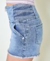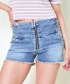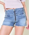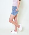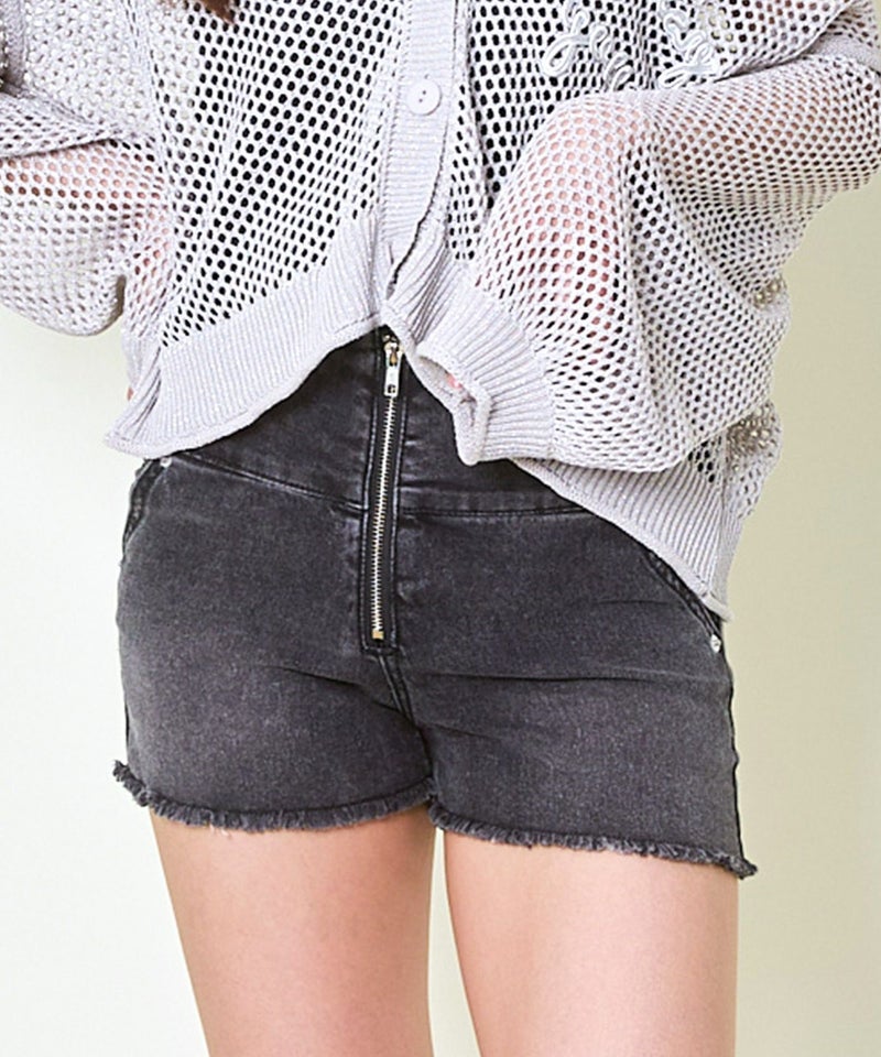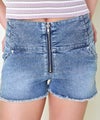ウエストサイドの編み上げデザインが印象的なフロントジップ ショートデニムパンツ