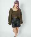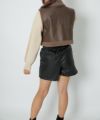 フェイクレザーのリッチな質感に、フロントジップを効かせたショートパンツ。