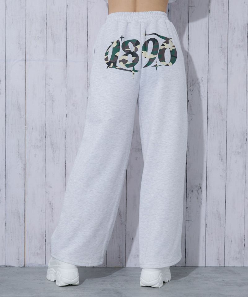 バックに存在感のあるカモフラ柄ラバープリントを効かせた、ストリートムード漂うスウェットワイドパンツです。