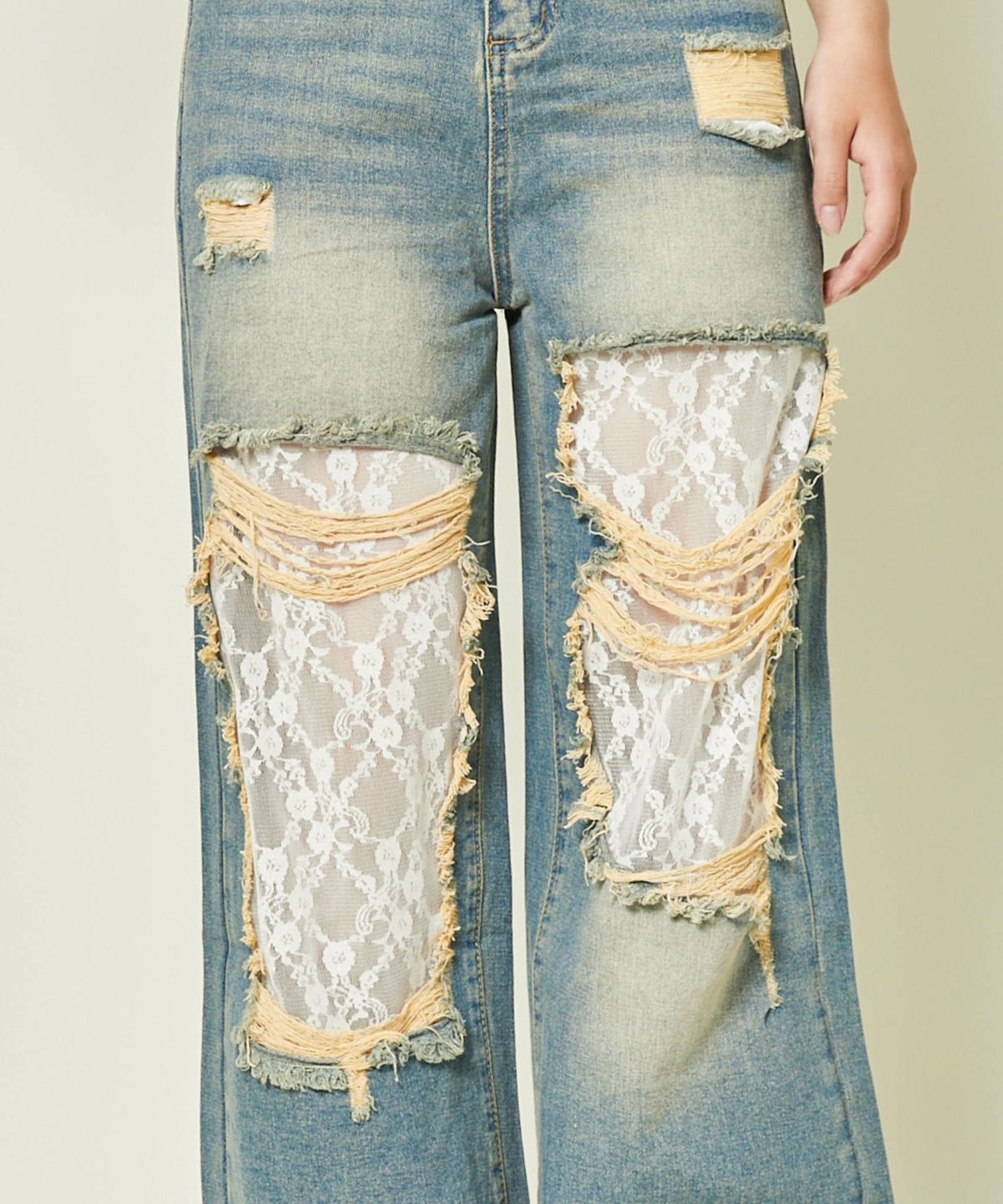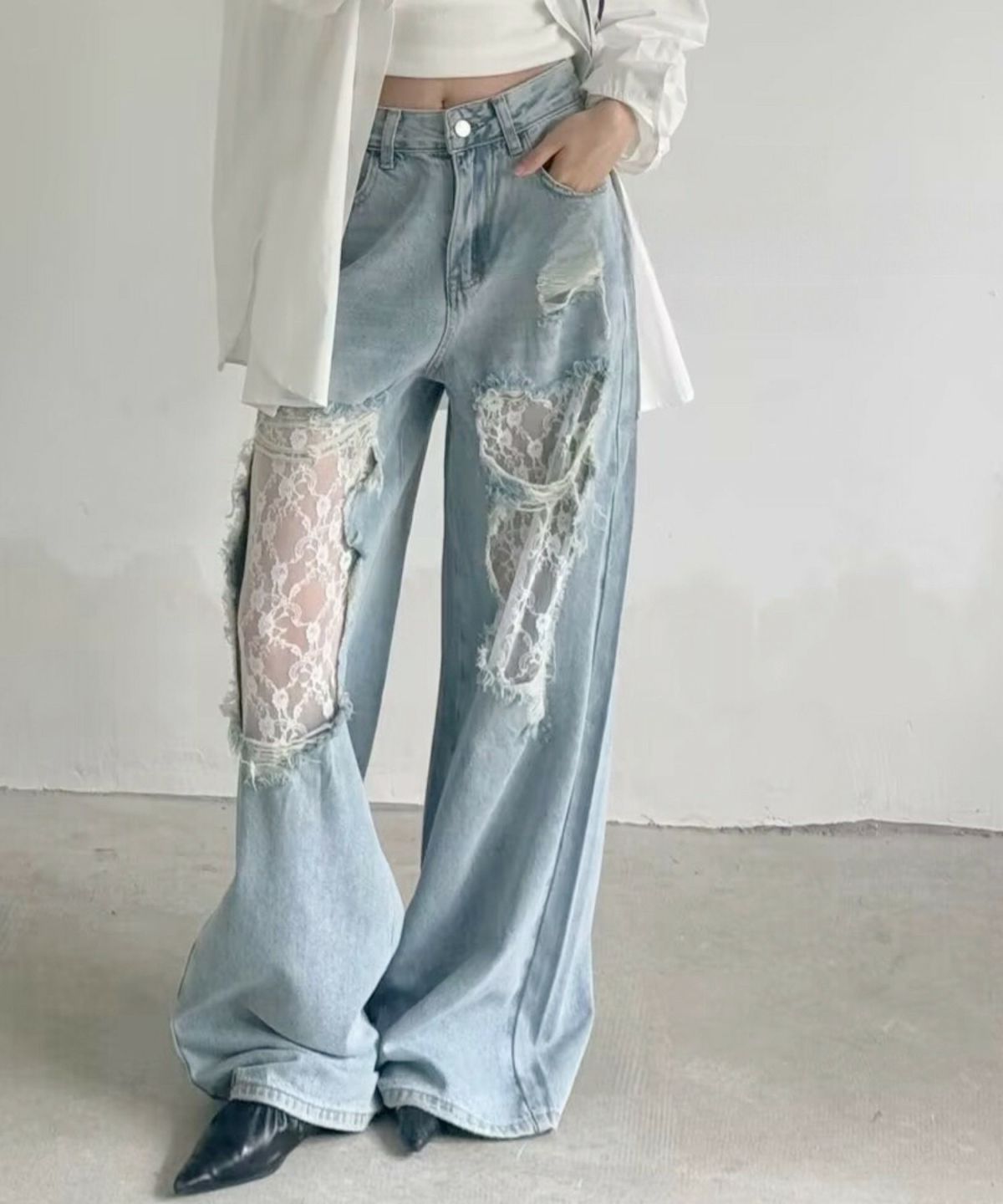 他の画像を見る 《レース×クラッシュ加工》レディース ワイドデニムパンツ 個性派 映え 春夏秋冬 2BUY10%OFF 定価 ¥ 6,589 のところ SALE価格 ¥ 2,739 税込 カートに入れる お気に入りに登録する