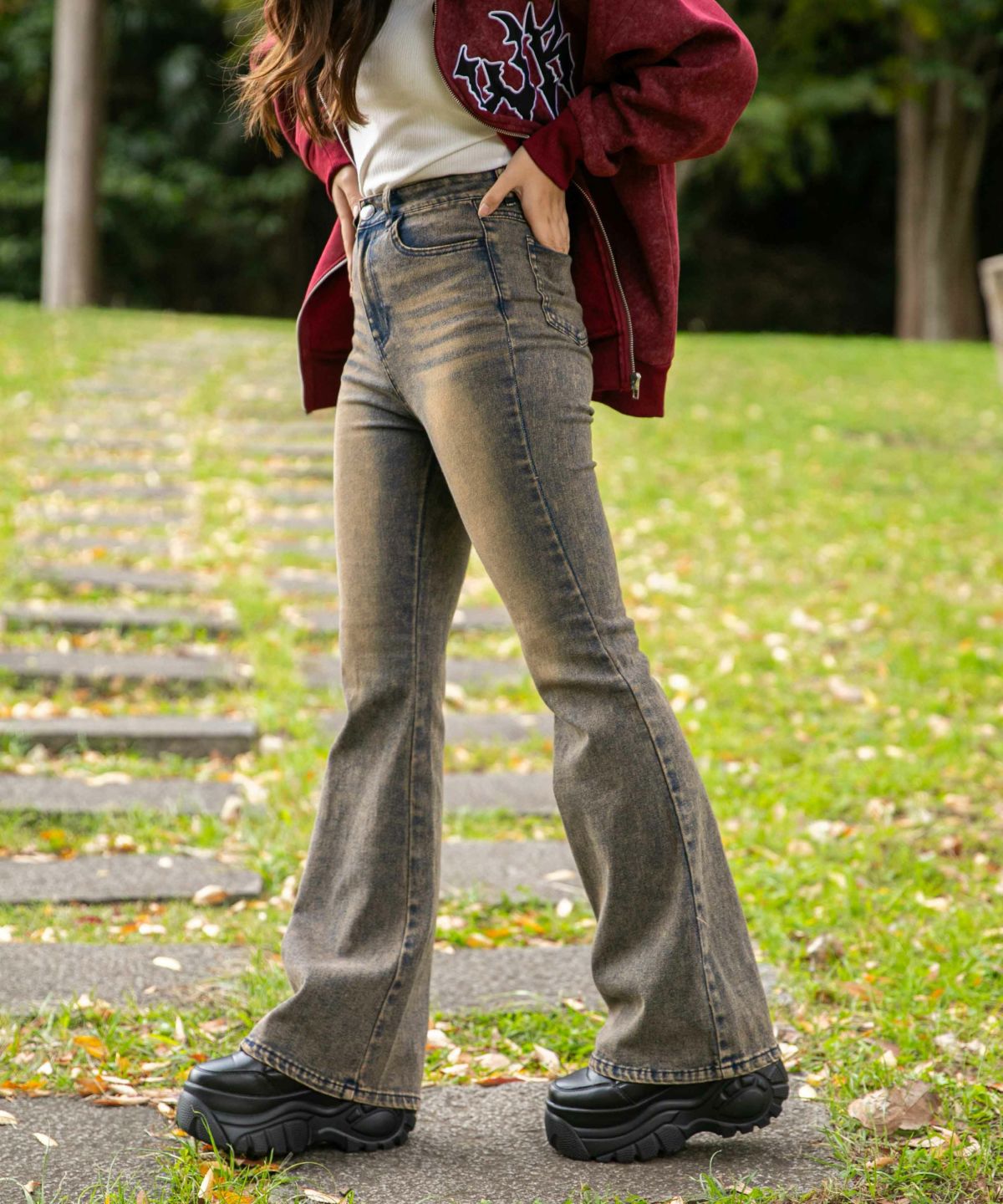他の画像を見る 《美脚シルエット×ストレッチ》脚長見え◎ヴィンテージフレアデニムパンツ NEW 2BUY10%OFF 定価 ¥ 6,589 のところ SALE価格 ¥ 2,739 税込 カートに入れる お気に入りに登録する