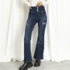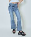 美シルエットを叶えるハイウエストフレアパンツ。3つボタンデザインでしっかり股上の深さがあるのでショート丈のトップスとの相性抜群♪フィットフレアのシルエットで膝下の脚のラインを自然にカバーしてくれるので脚をキレイに見せてくれます。ビンテージ風の色味の加工も今季らしい雰囲気を出してくれるポイントです。