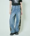 《メイサイ切替ワイド》サイドラインデニムパンツ/インパクトデザイン