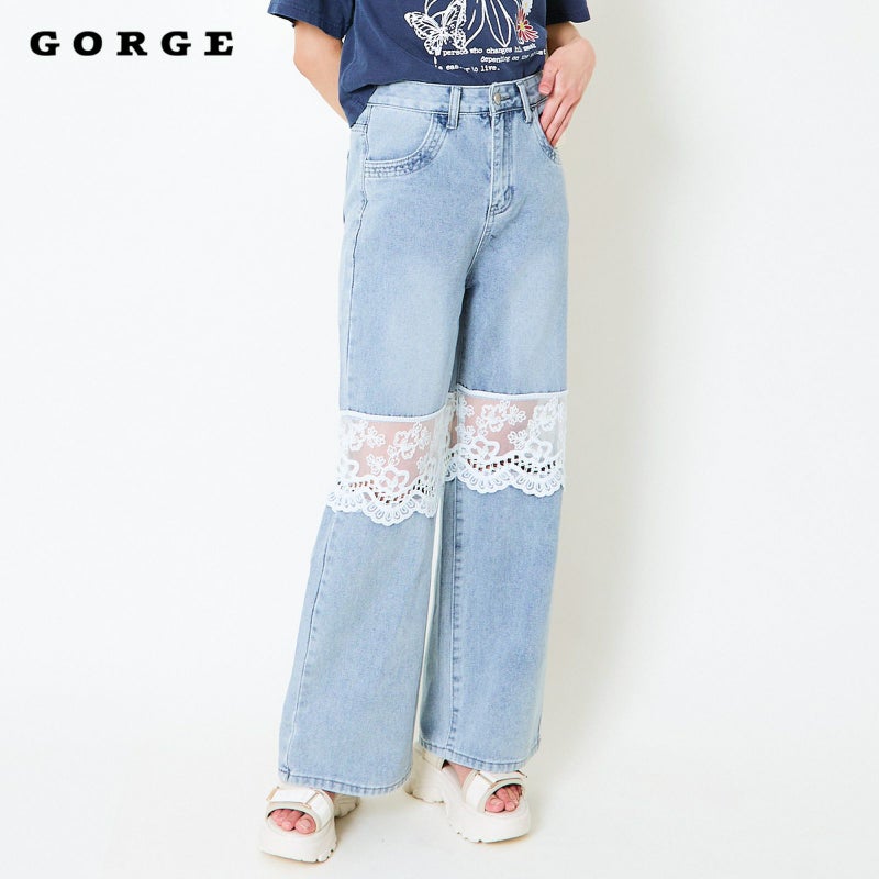 デニムというカジュアルな素材にレースという繊細でエレガントな要素が組み合わさることで、甘辛ミックスなスタイルが楽しめるのが特徴です◎