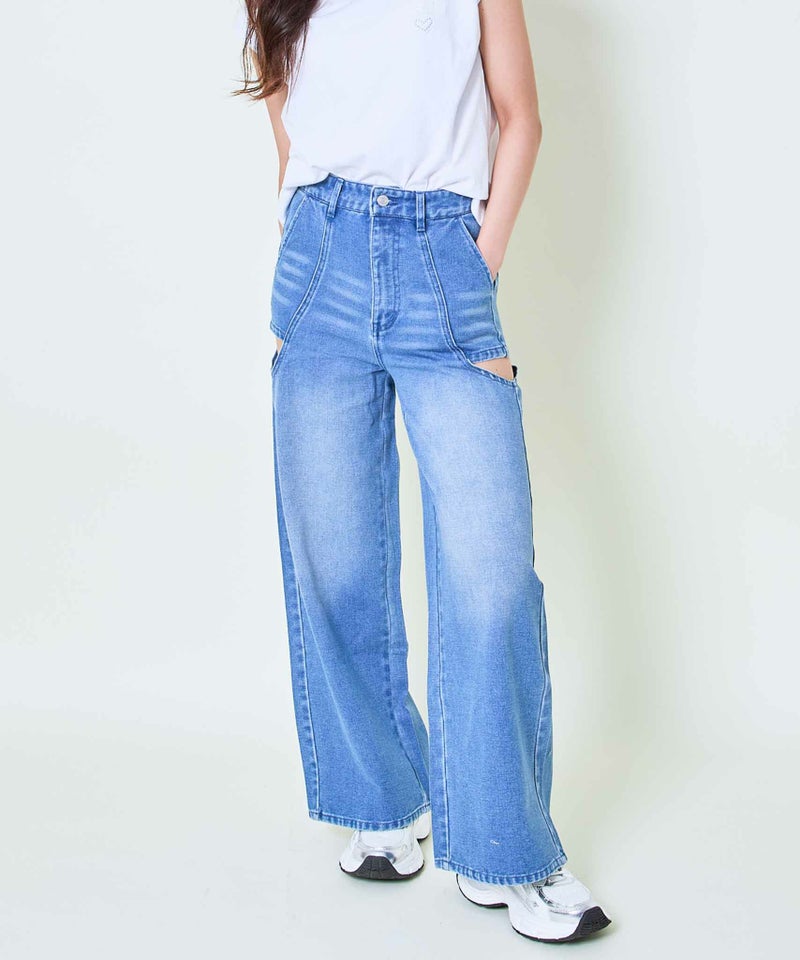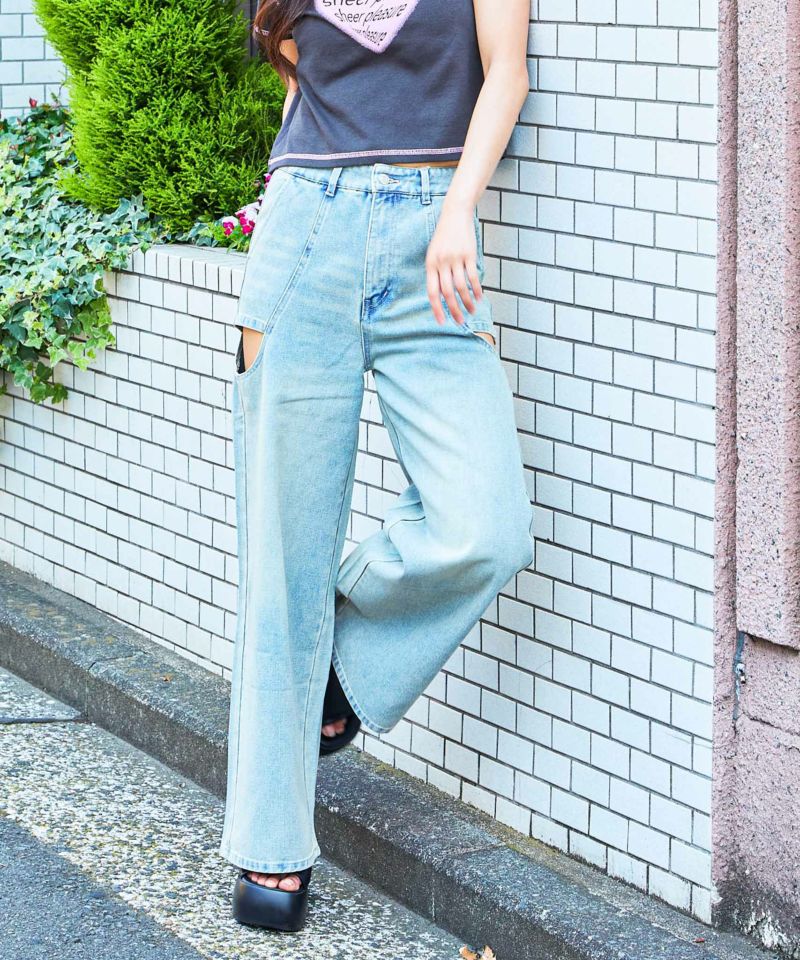 大胆な肌見せで差をつける!サイドカットアウトデニムパンツ