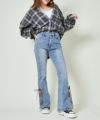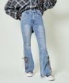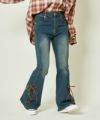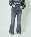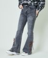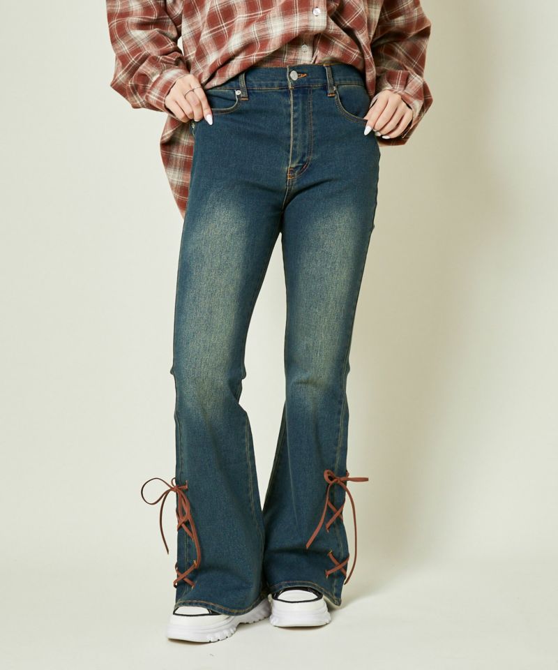 ヴィンテージ感のあるウォッシュ加工に、裾のレースアップディテールがアクセント。ほんのりフレアなシルエットが脚をすっきり見せてくれて、動くたびに裾が揺れるのも魅力的。ウエストは後ろゴム仕様で、見た目以上にラクな履き心地です。